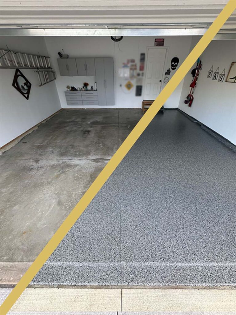 Using polyaspartic or epoxy, this system can transform any floor into an aesthetically pleasing and durable surface with our one-day applications.